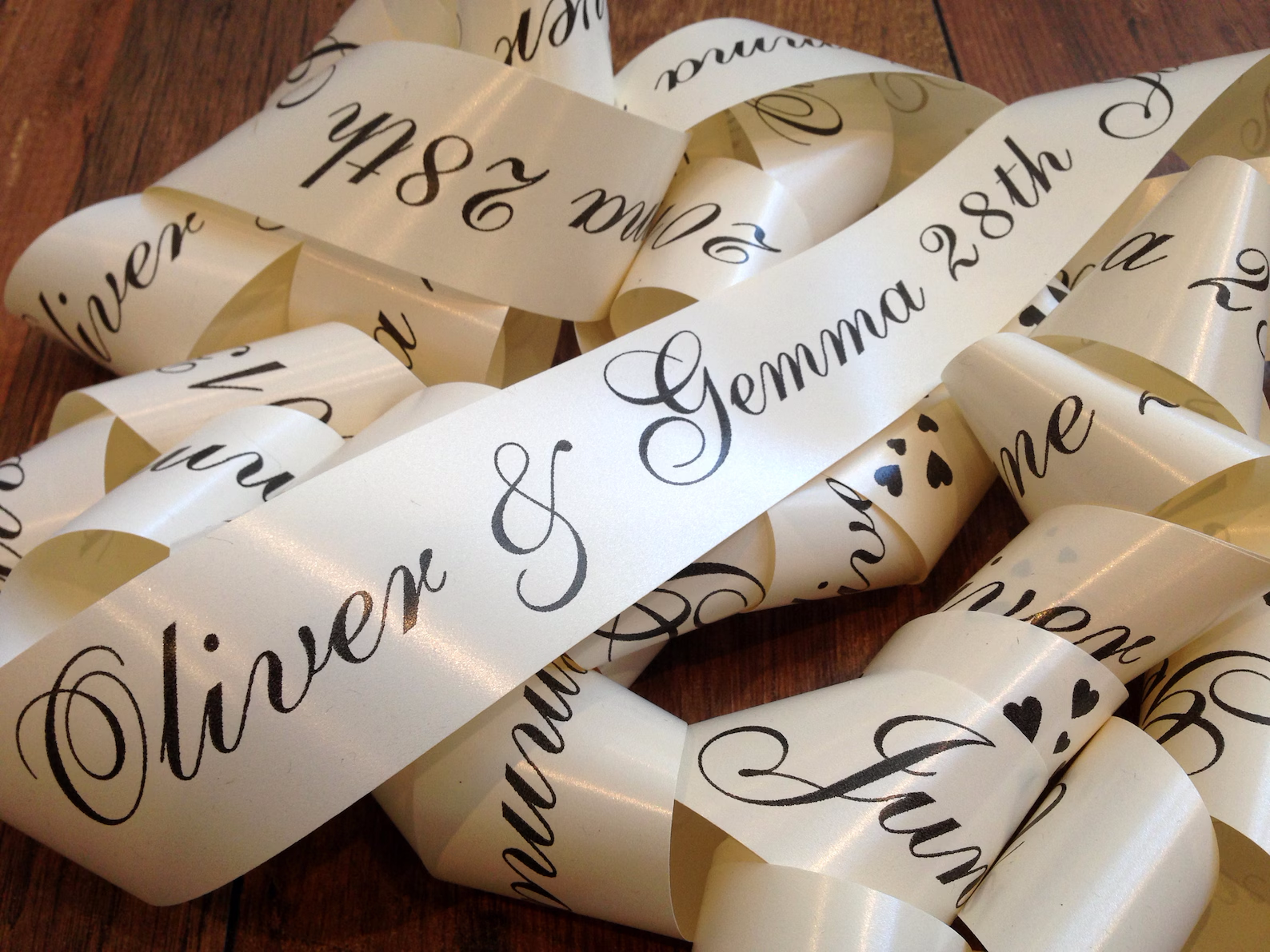 Elegance in every detail. Custom wedding car ribbons printed with your names — the perfect finishing touch for your Rolls-Royce